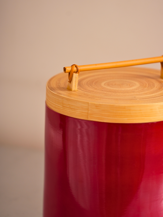 Red Lacquer & Bamboo Cannister