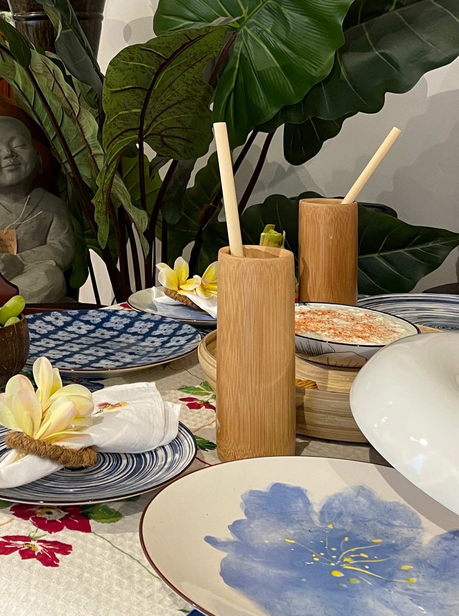 The pack includes four bamboo straws and a cleaner, making them a perfect plastic straw replacement. These handcrafted straws are essential for any bag and promote sustainability while being reusable. Make a positive impact and take a step towards sustainable living with these bamboo straws.