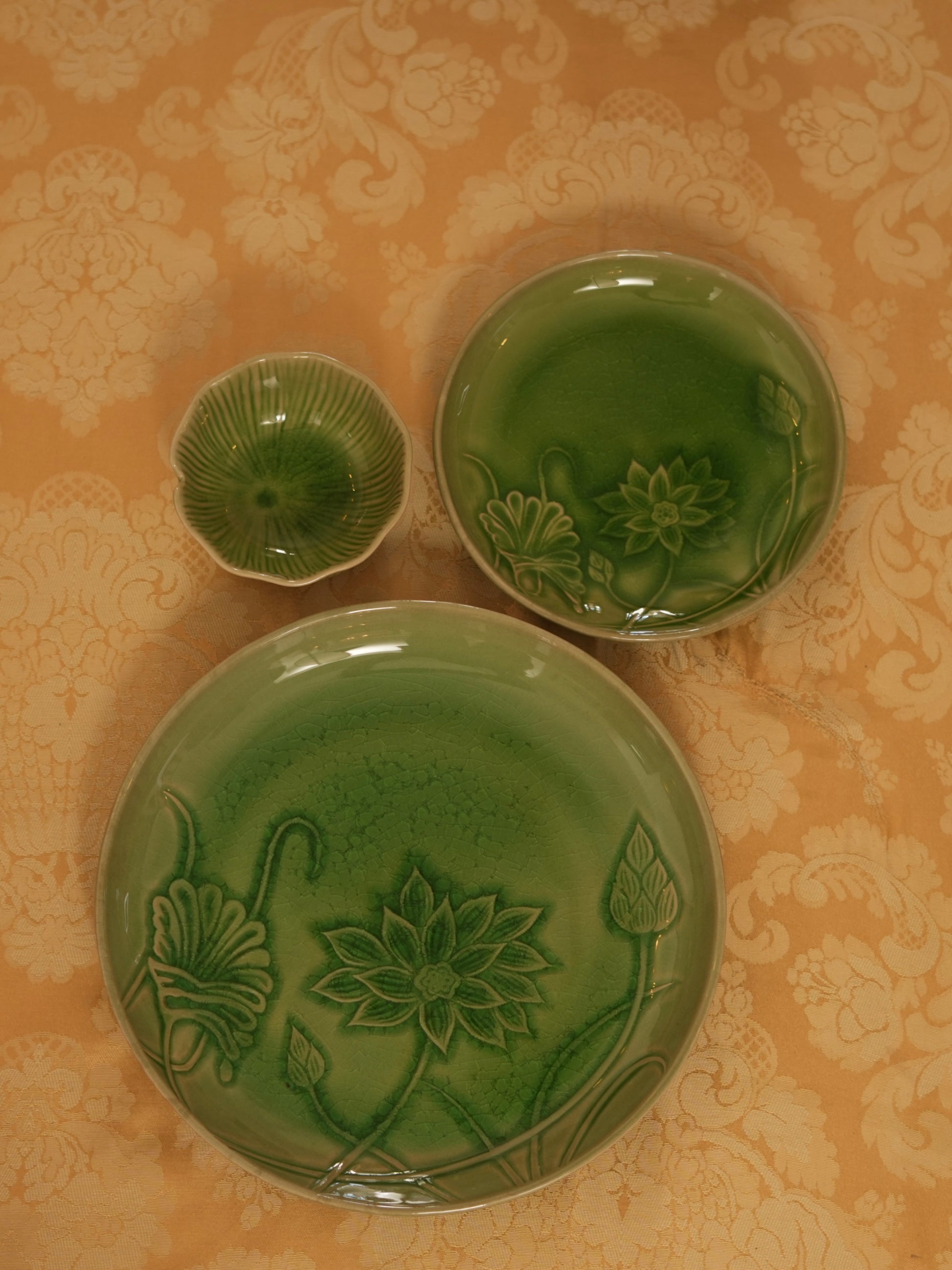 Elevate your dining experience with the "Kamal" Stoneware Green Celladon Set. This set includes 4 full plates and 4 half plates, all designed to showcase the exquisite aesthetics of the host. Introduce a touch of sophistication and exclusivity to your table with our premium set.