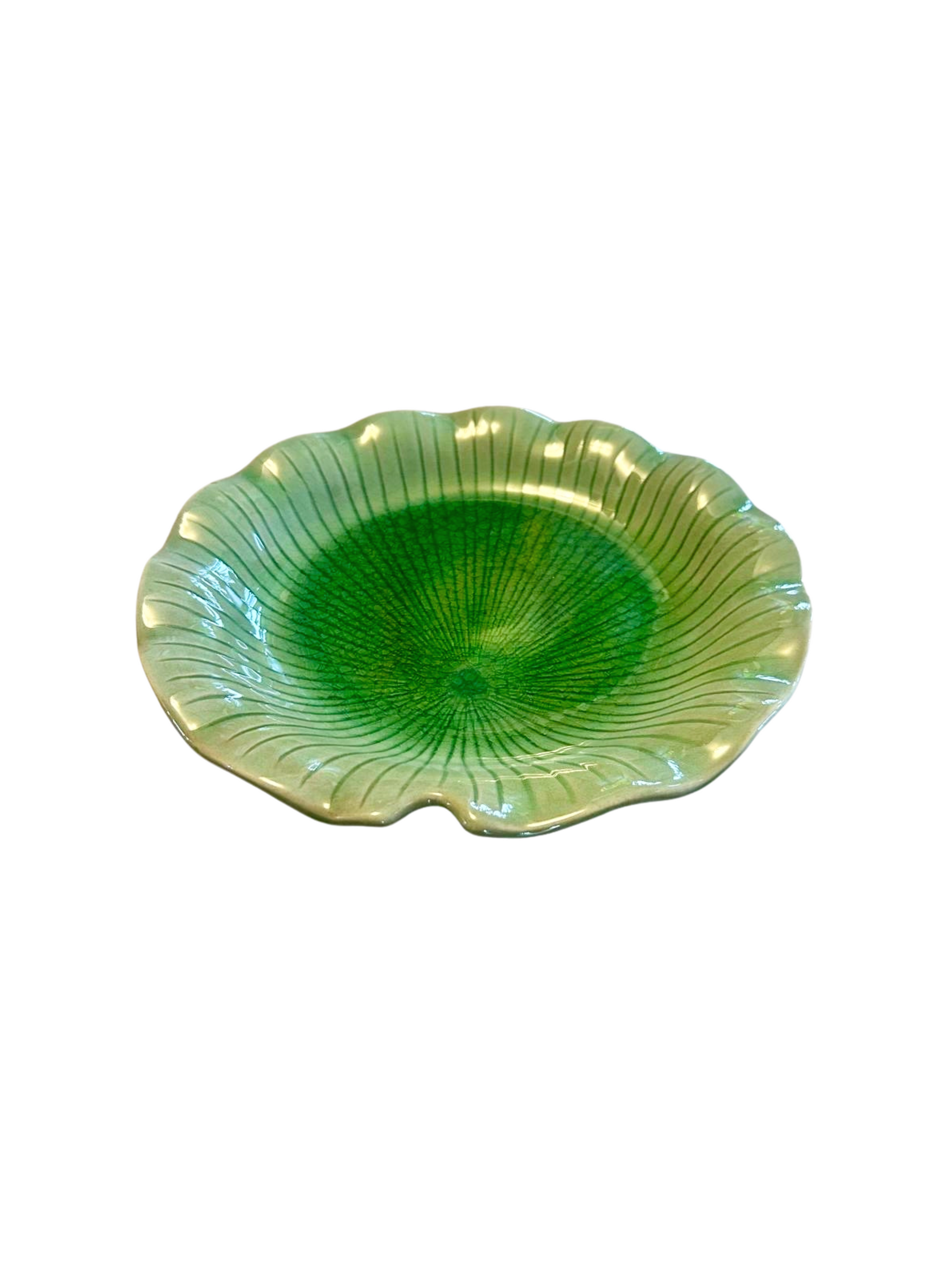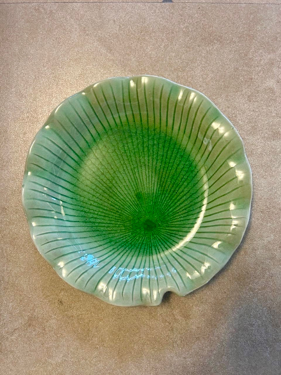 Adorn your table with the exquisite Round Lotus Leaf Platter. This ceramic platter, artfully designed in a sophisticated shade of green, elevates the presentation of your food to new heights.