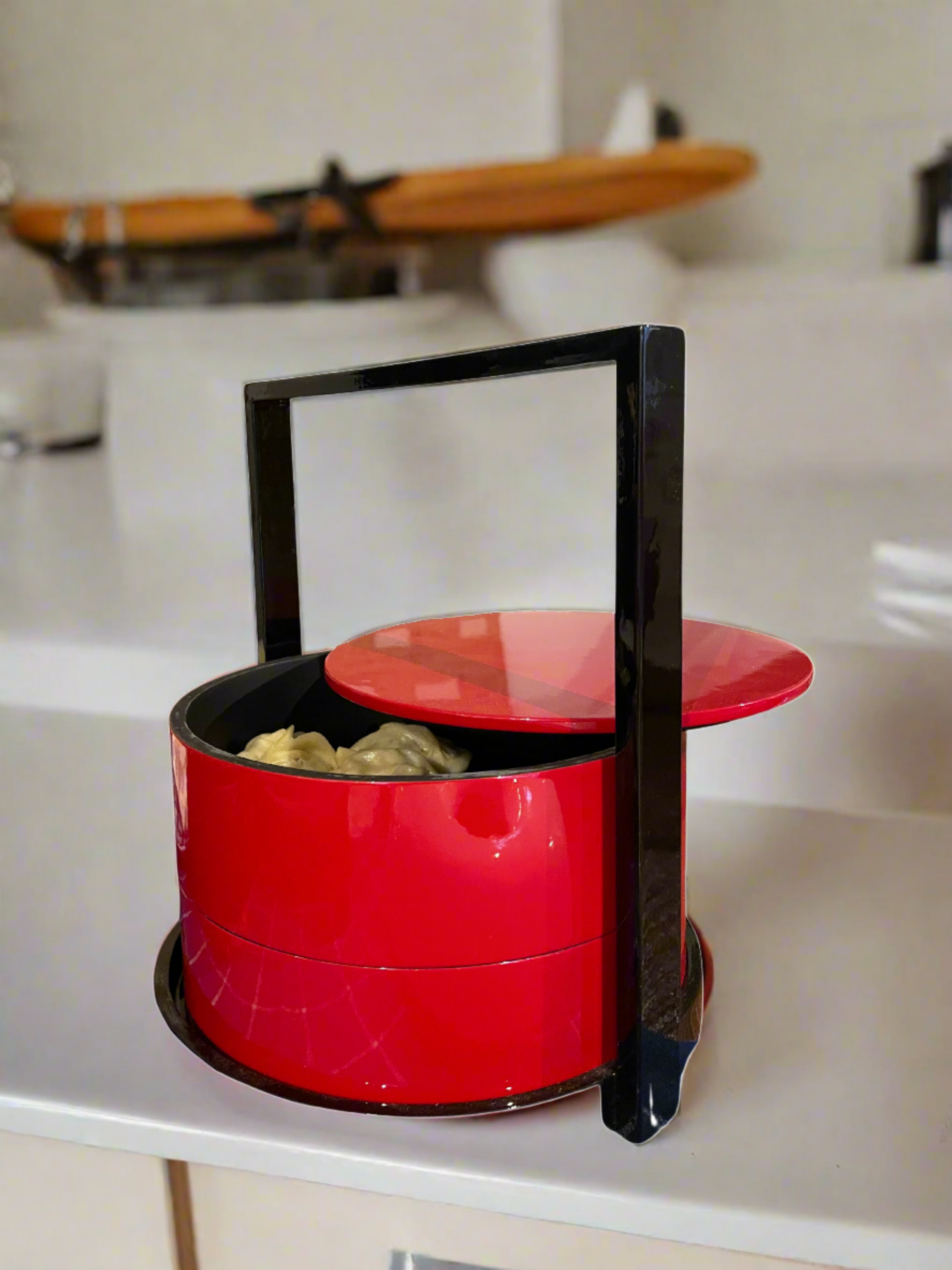 Indulge in a refined dining experience with our impeccably designed Tiffin, featuring a stunning red lacquer interior. Enhance your table setting with our exquisite lacquered Bento Box, perfect for the discerning palate